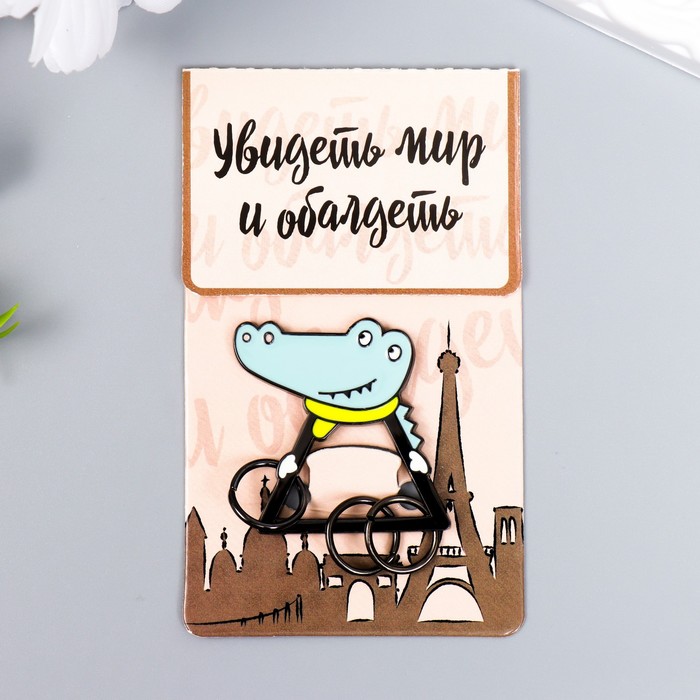 Брелок-ключница металл "Крокодил в шарфике" 3,8х3,8 см