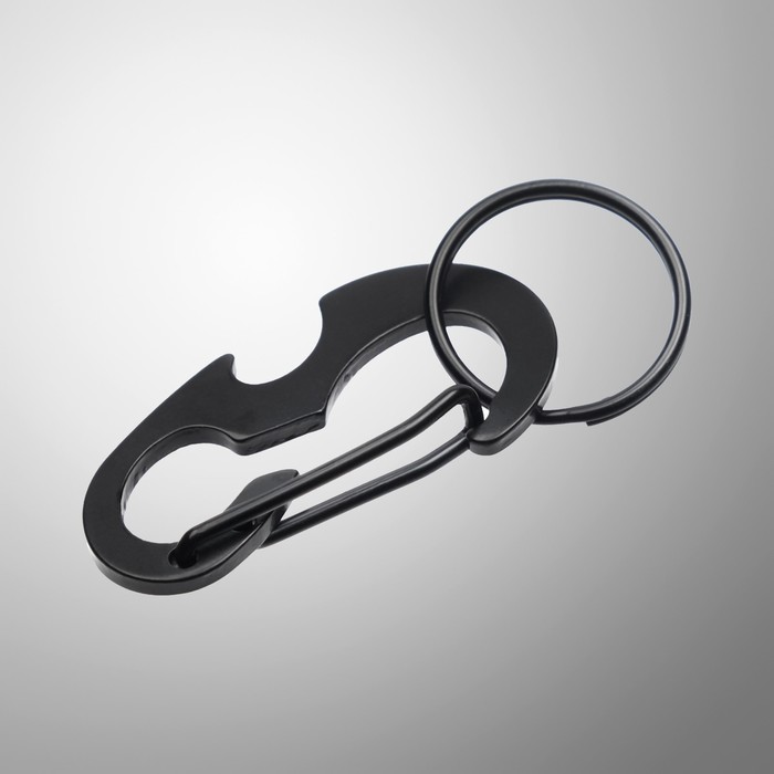 Карабин с кольцом для ключей и открывашкой, чёрный 5 см