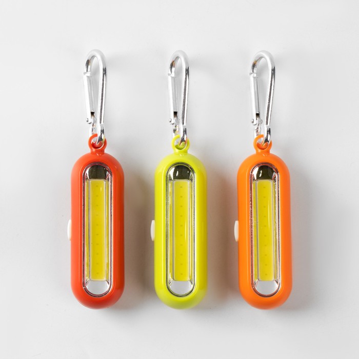 Фонарик брелок для ключей на карабине, 100 Лм, 1×ААА, 3 режима, 8×2.5×2 см, МИКС