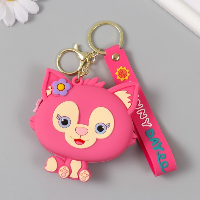 Брелок кошелёк с карабином, ремешком силикон "Котёнок с цветочком" 3х8,5х8,3 см