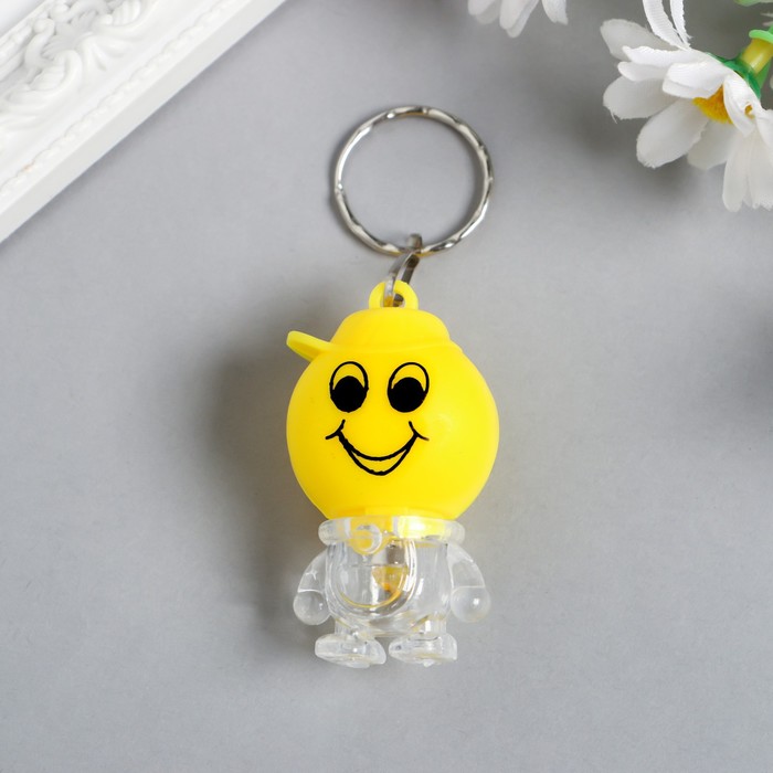 Фонарик брелок для ключей на кольце «Смайлик в кепке», мигает, 5×3×2.5 см, МИКС