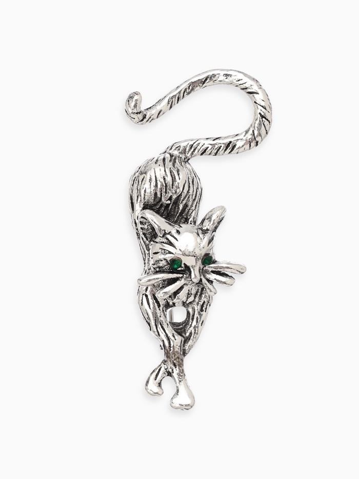 Брошь «Кошка грациозная», цвет зелёный в чернёном серебре