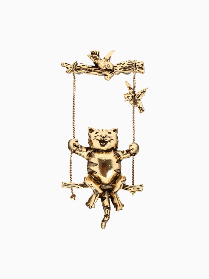 Брошь «Кот на качелях», цвет чернёное золото