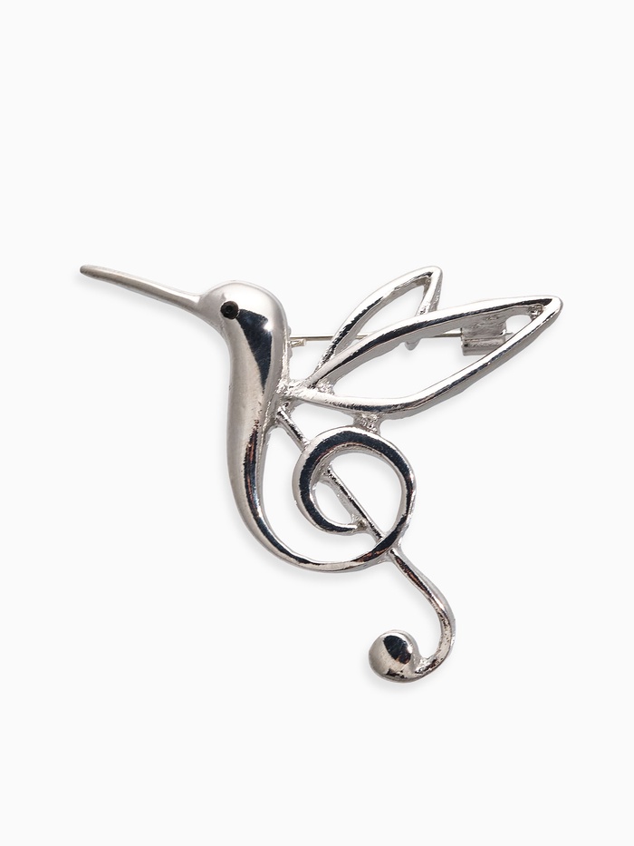 Брошь «Колибри. Скрипичный ключ», цвет серебро