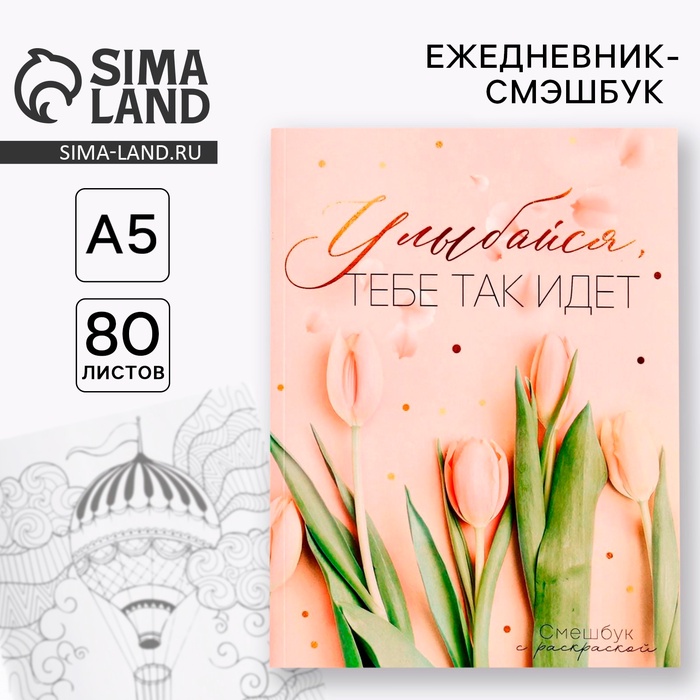 Ежедневник-Смэшбук с раскраской А5, 80 л «Улыбайся, тебе так идет»
