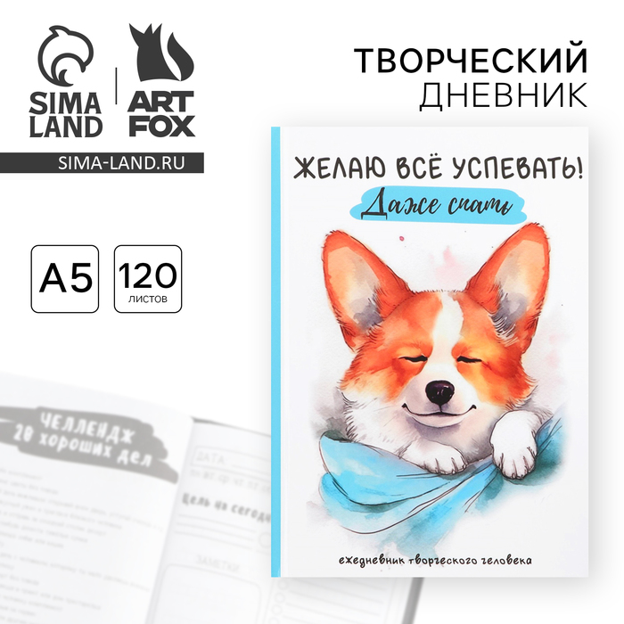 Ежедневник творческого человека с заданиями А5, 120 л. В твердой обложке «Корги»