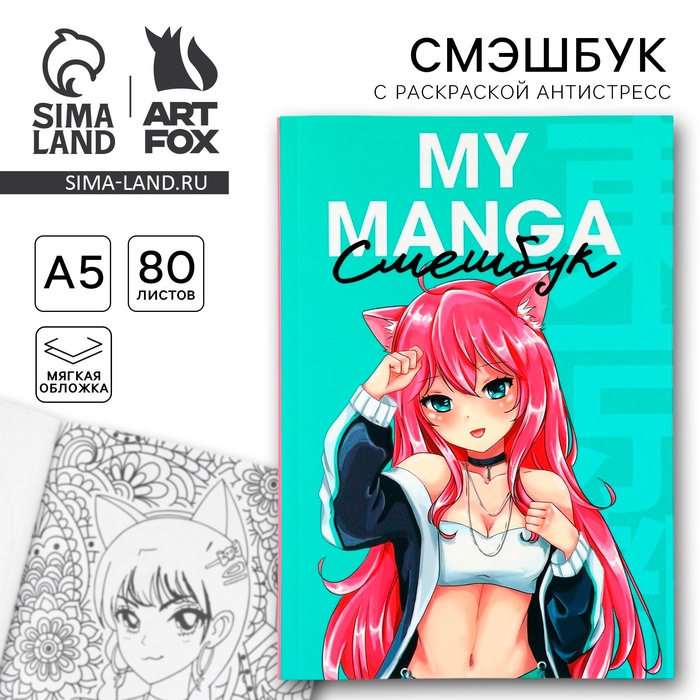 Смэшбук с раскраской антистресс А5, 80 л «Манга»