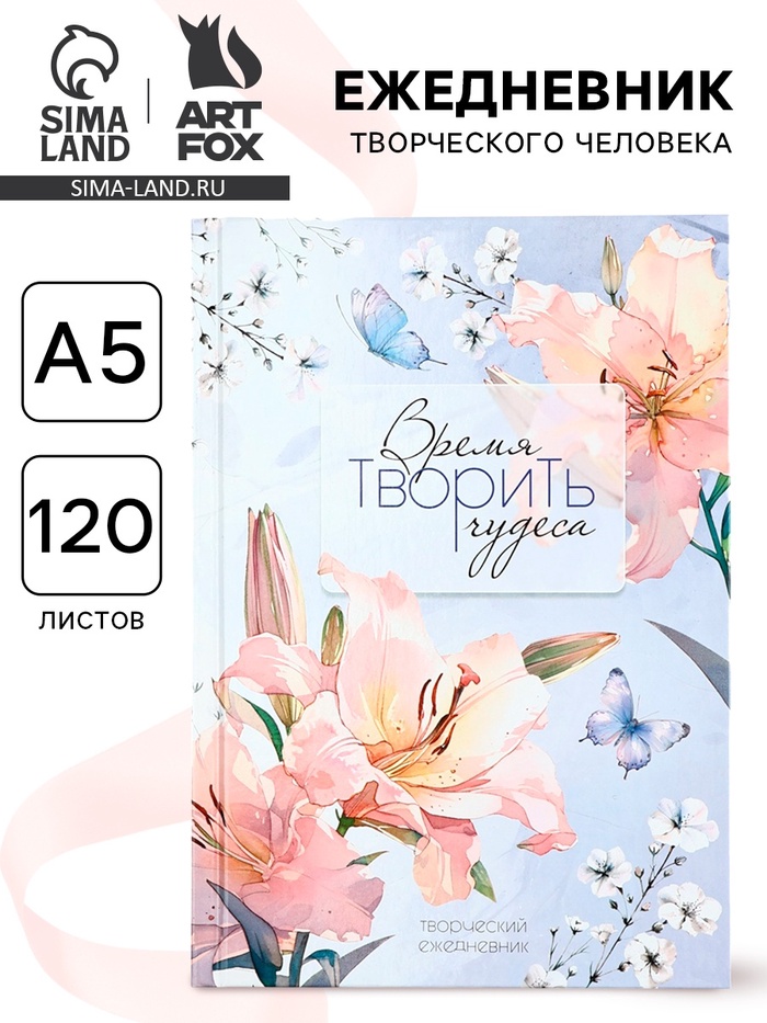 Творческий ежедневник, твердая обложка А5, 120 л «Время творить чудеса»