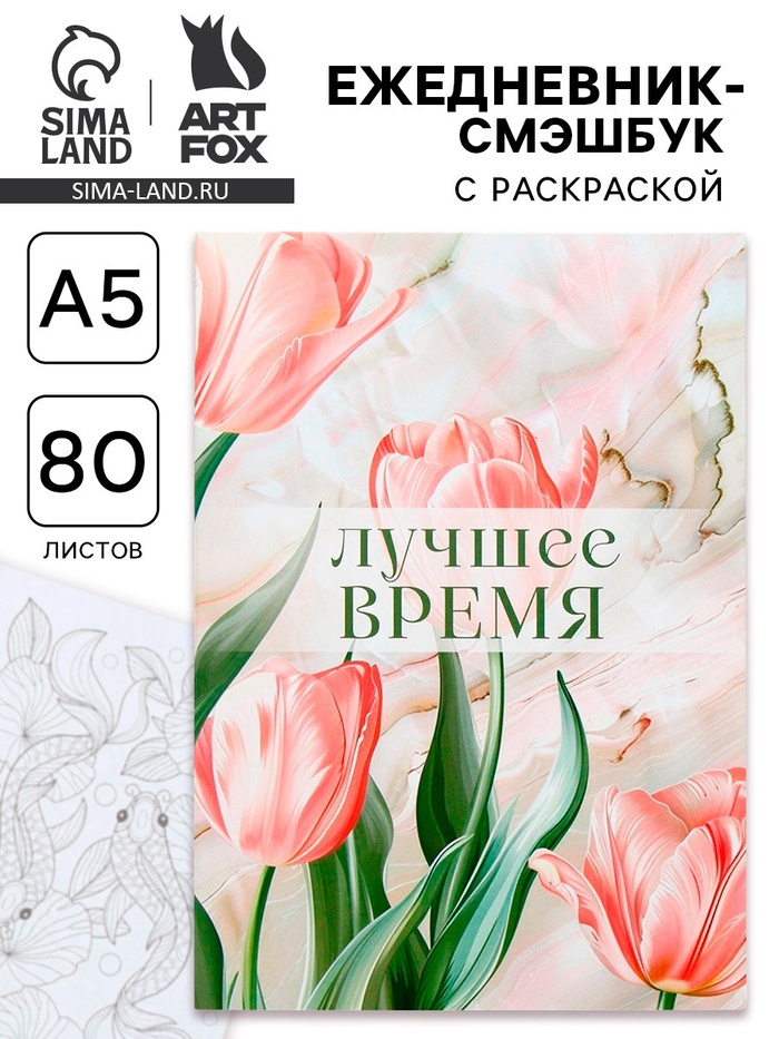 Ежедневник-Смэшбук раскраска антистресс А5, 80 листов «Лучшее время»