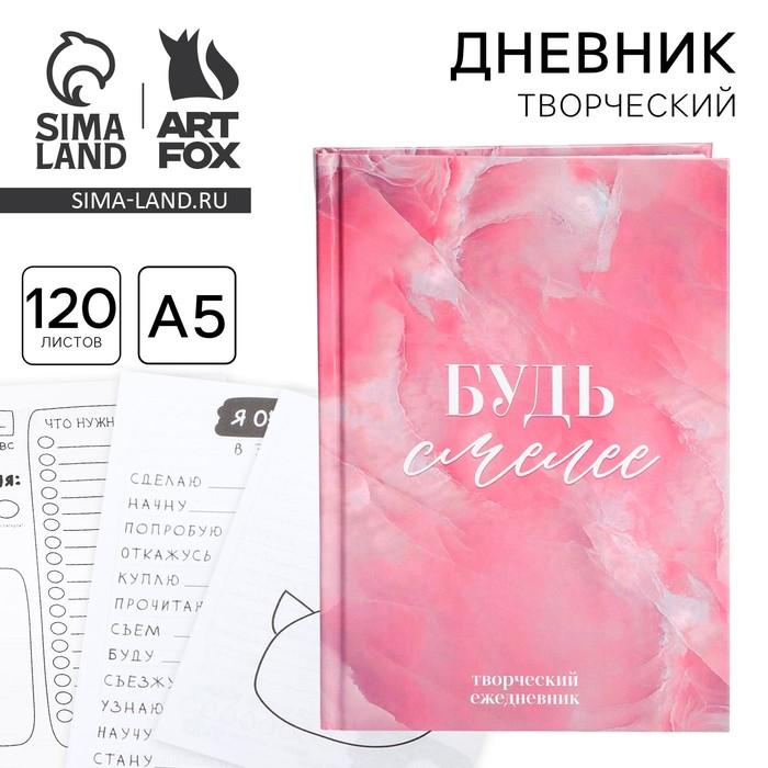 Творческий дневник, твердая обложка А5, 120 л. «Мечты. 8 марта»