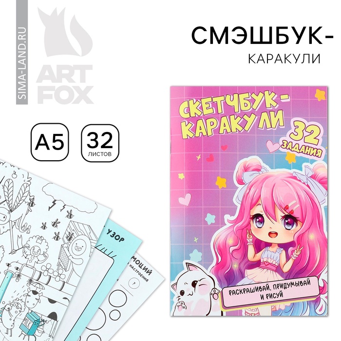 Смэшбук-каракули А5, 32 л «Аниме девочка»