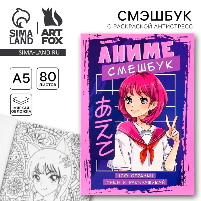 Смэшбук с раскраской антистресс А5, 80 л «Чиби»