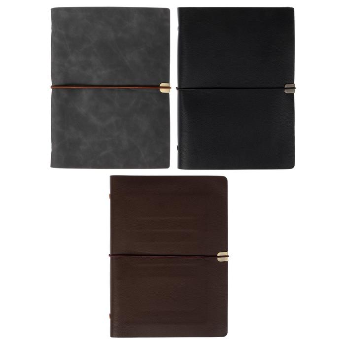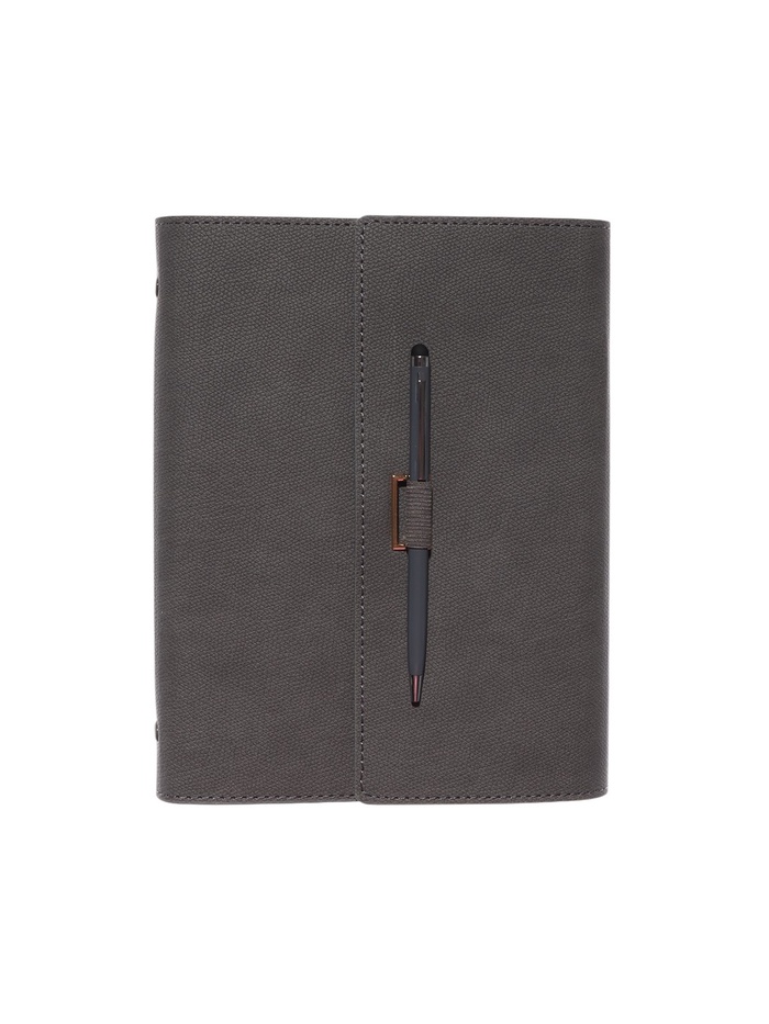 Органайзер на кольцах, А5, с клапаном, 80 листов, в линейку, искусственная кожа, с ручкой, серый