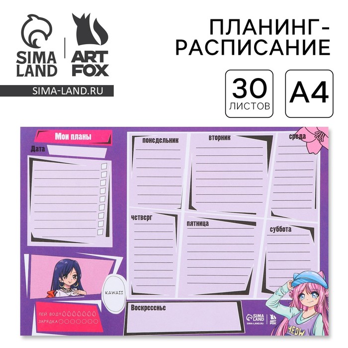 Планер-расписание школьника А4, 30 листов «Аниме»
