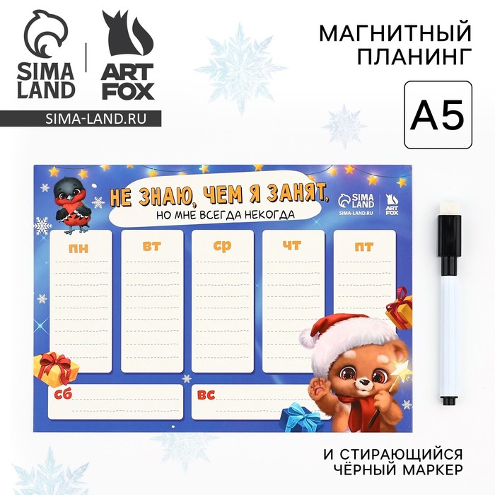 Планер магнитный, А5 и стирающийся маркер «Новый год: Мишутка»