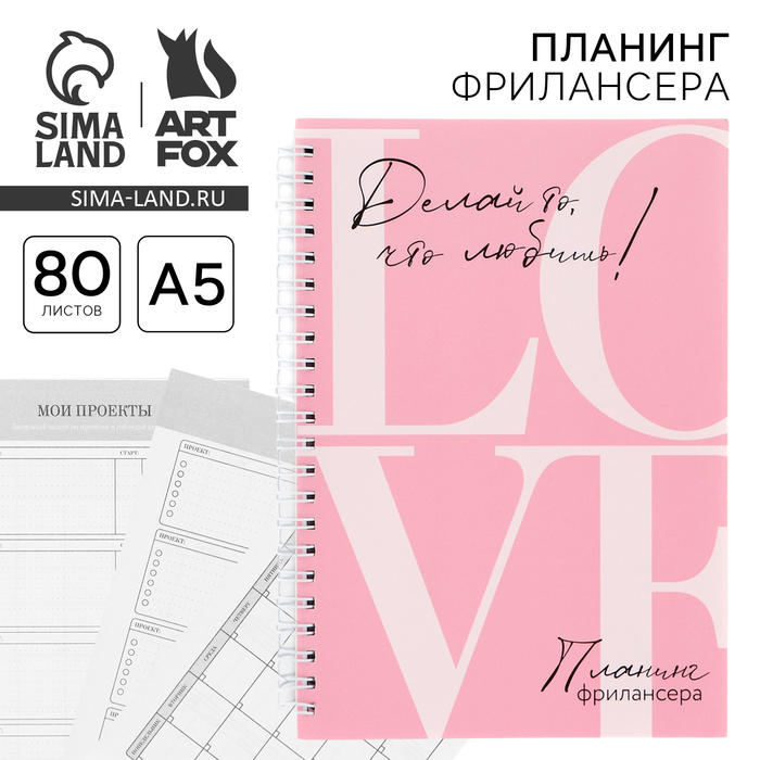 Планер фрилансера LOVE, розовый А5, 80 л.