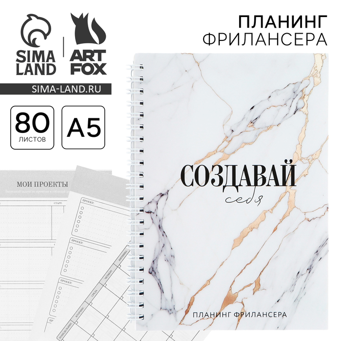 Планер фрилансера «Создавай себя» мрамор А5, 80 л.