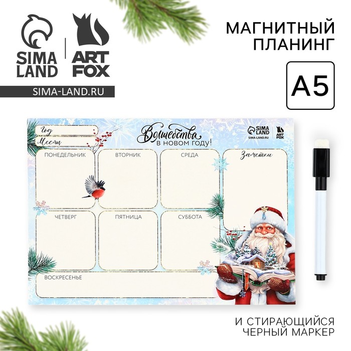 Планер магнитный, А5 и стирающийся маркер «Волшебство в Новом году! С Дедом Морозом»