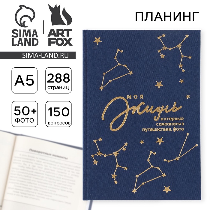 Планер интервью А5, 144 листа, твердая обложка, текстиль «Синий»