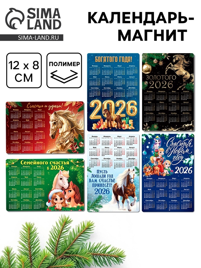 Календарь на магните 2026 «Новогодний», микс 6 шт., 8×12 см