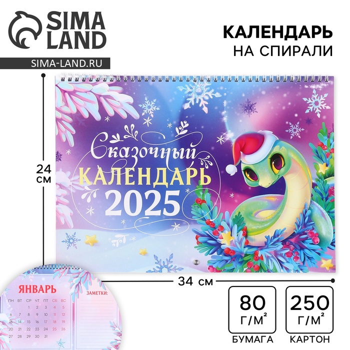 Календарь 2025 настенный, на спирали «Новый год: Зеленая змейка», 34 х 24 см