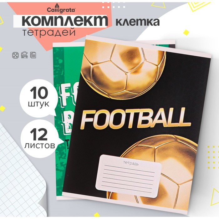 Комплект тетрадей из 10 штук, 12 листов в клетку Calligrata "Футбол", обложка мелованный картон, ВД-лак, блок офсет, 5 видов по 2 штуки
