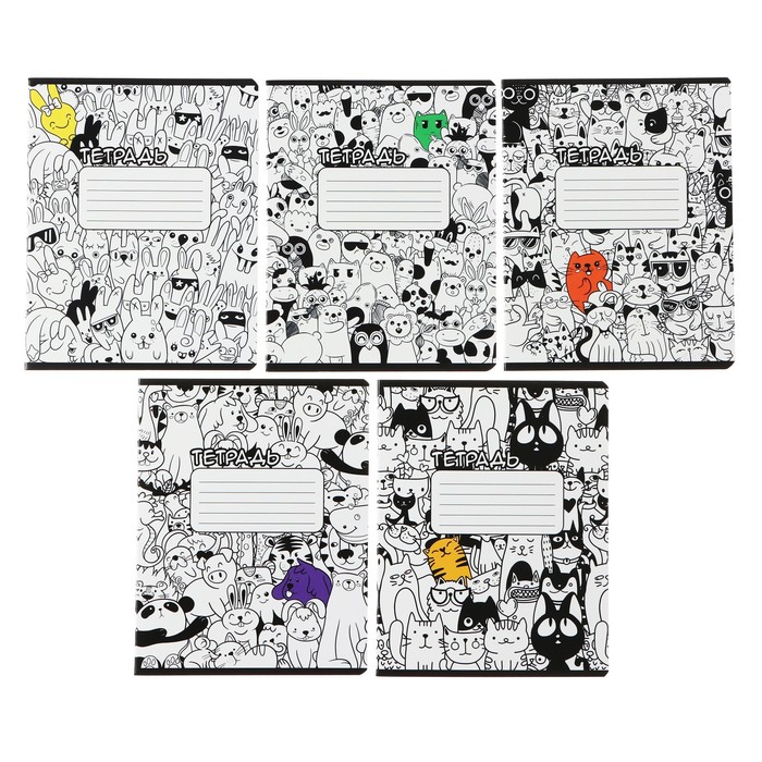 Тетрадь 24 листа в клетку Calligrata "Животный Микс", обложка мелованный картон, ВД-лак, блок офсет, белизна 95%, МИКС