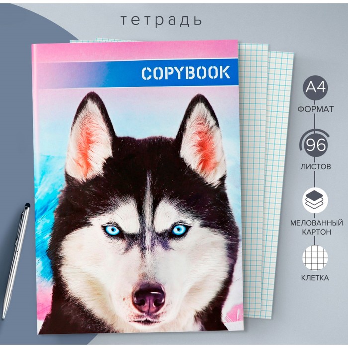 Тетрадь А4, 96 листов в клетку Calligrata «Лайка», обложка мелованный картон, блок №2, белизна 75%, (серые листы)