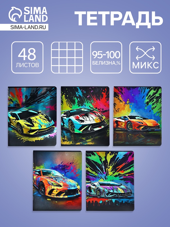 Тетрадь 48 листов, в клетку «Красочные машины», мелованный картон, МИКС