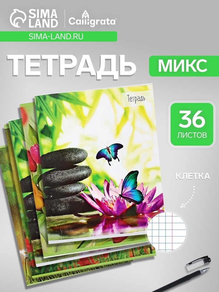 Тетрадь 36 листов в клетку Calligrata «Бабочки», серые листы, МИКС