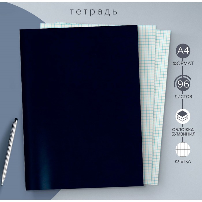 Тетрадь А4, 96 листов в клетку Calligrata, бумвинил, блок офсет, синий