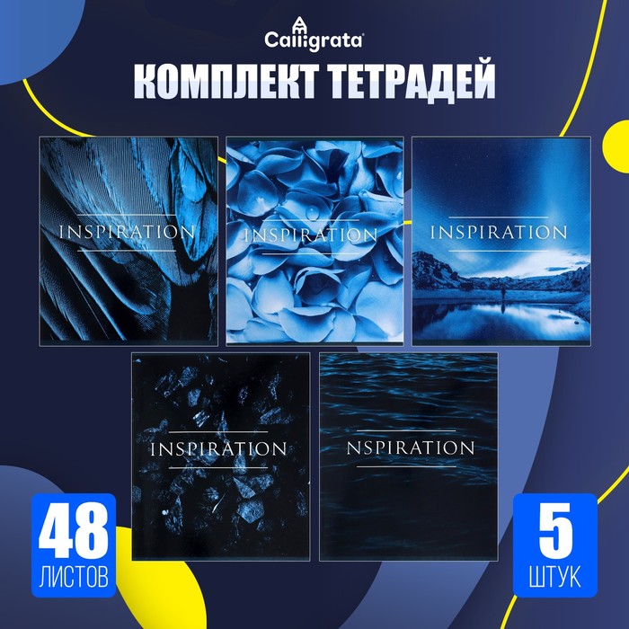 Комплект тетрадей из 5 штук, 48 листов в клетку Calligrata "Вдохновение", обложка мелованный картон, блок офсет
