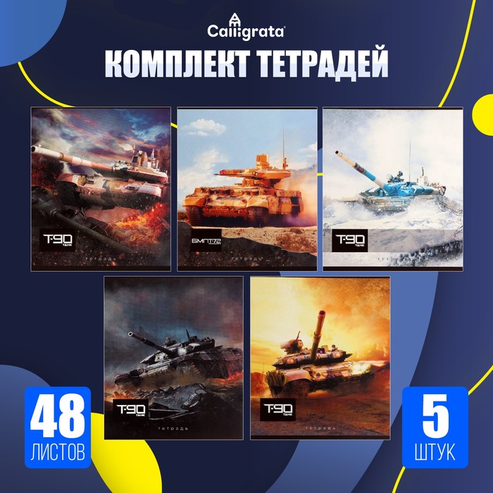 Комплект тетрадей из 5 штук, 48 листов в клетку Calligrata "Танки", обложка мелованный картон, блок офсет