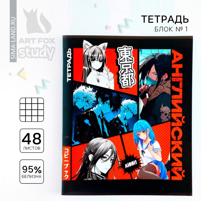 Тетрадь в клетку, предметная, 48 л.,на скрепке, А5 «Аниме Комикс. Английский»