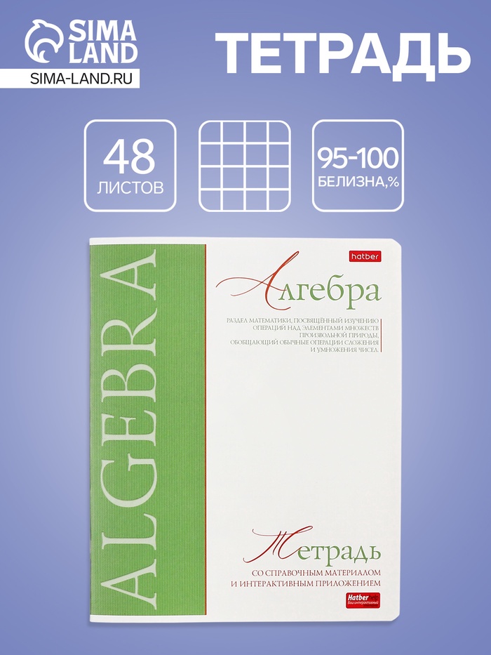 Тетрадь 48 листов в клетку «Буквица» Алгебра, белые листы