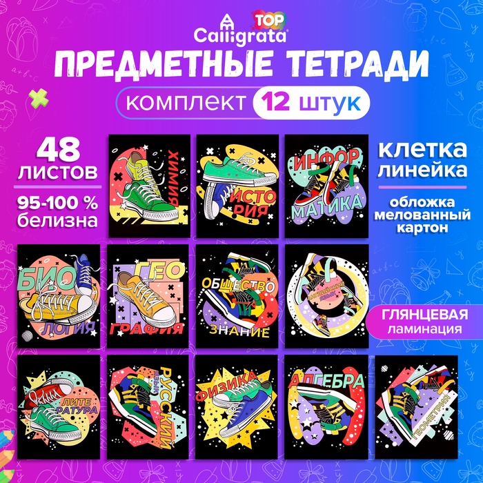 Набор предметных тетрадей 48 листов, Calligrata «Кеды», 12 предметов