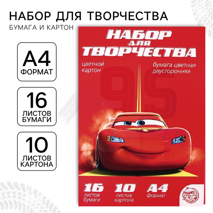 Набор для творчества «Тачки» А4: 10 л цветного одностороннего картона + 16 л цветной двусторонней бумаги