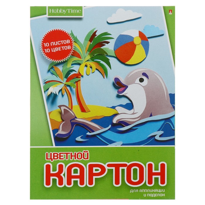 Картон цветной А5, 10 листов, 10 цветов "Хобби Тайм", МИКС