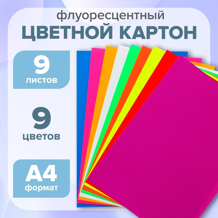 Набор картона цветного флуоресцентного, формат А4, 9 листов, 9 цветов