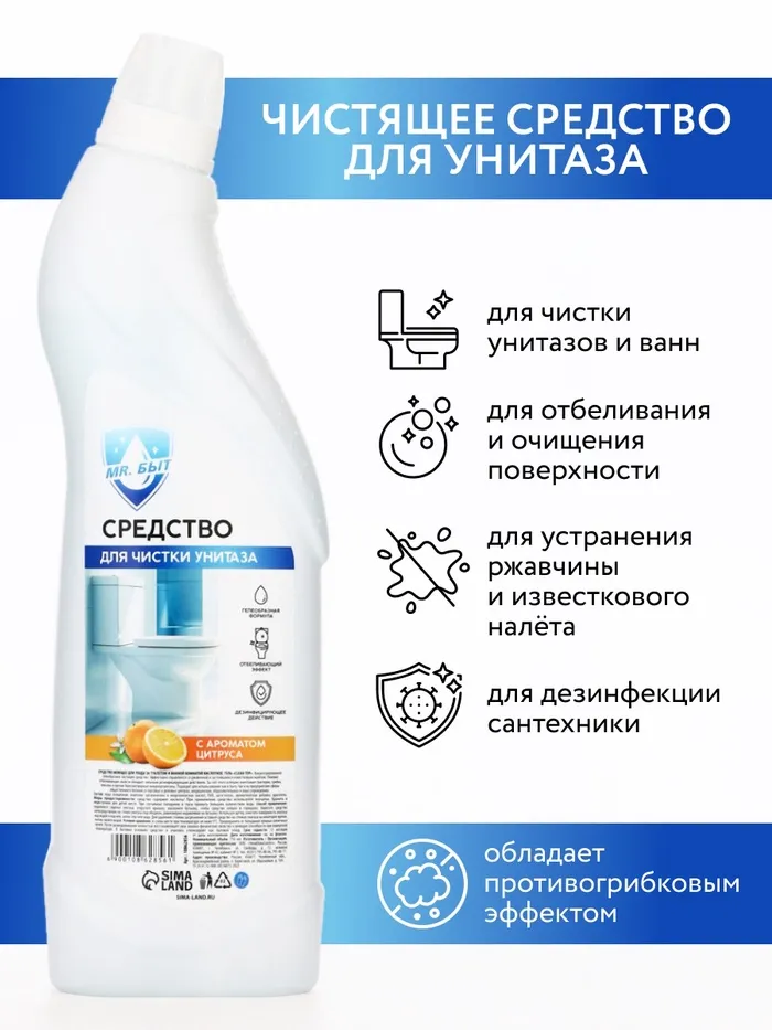 Средство для чистки унитаза, 750 мл, аромат цитрус, Mr.Быт
