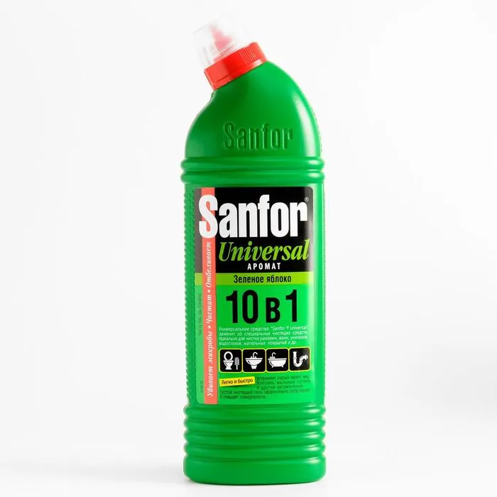 Чистящее средство Sanfor "Зеленое яблоко", антимикробный, гель, универсальное, 750 мл