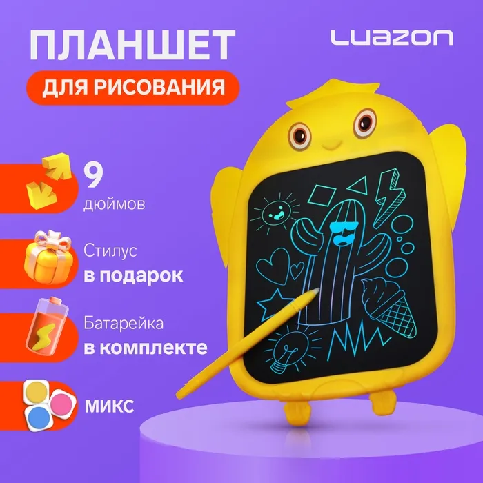 Планшет для рисования и заметок Luazon «Цыпленок», 9", функция блокировки, МИКС