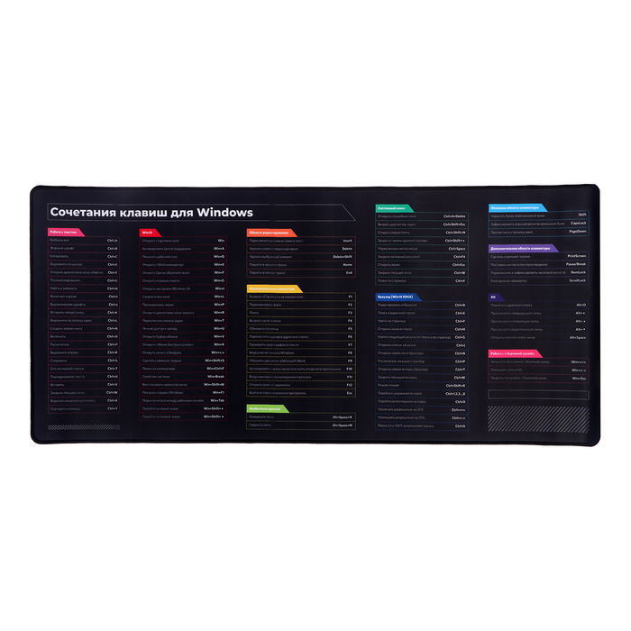 Коврик для мыши, 40×90×0.3 см, оверлок, горячие клавиши