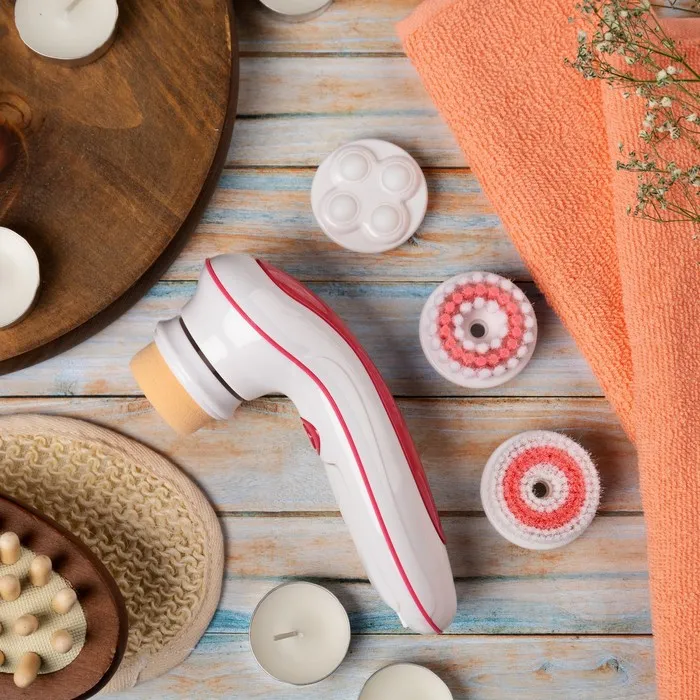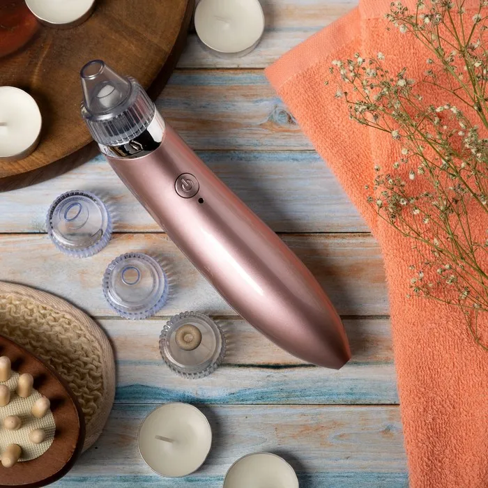 Вакуумный массажёр для чистки лица Luazon LMZ-050, 4 насадки, АКБ, розовый