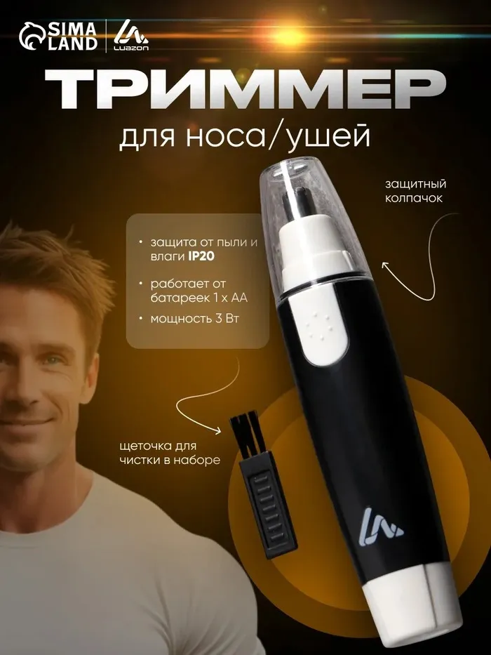 Триммер Luazon LTRI-08, для носа/ушей, 1хАА (не в комплекте), черный