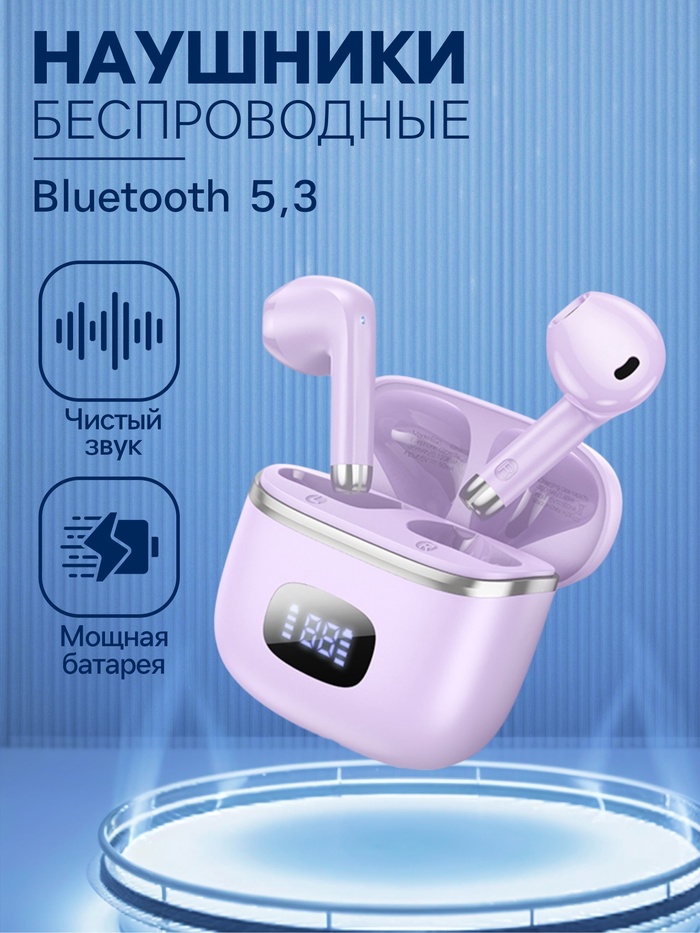 Наушники беспроводные Hoco EQ1, TWS, вкладыши, Bluetooth 5.3, 40/400 мАч, с дисплеем, фиолетовые