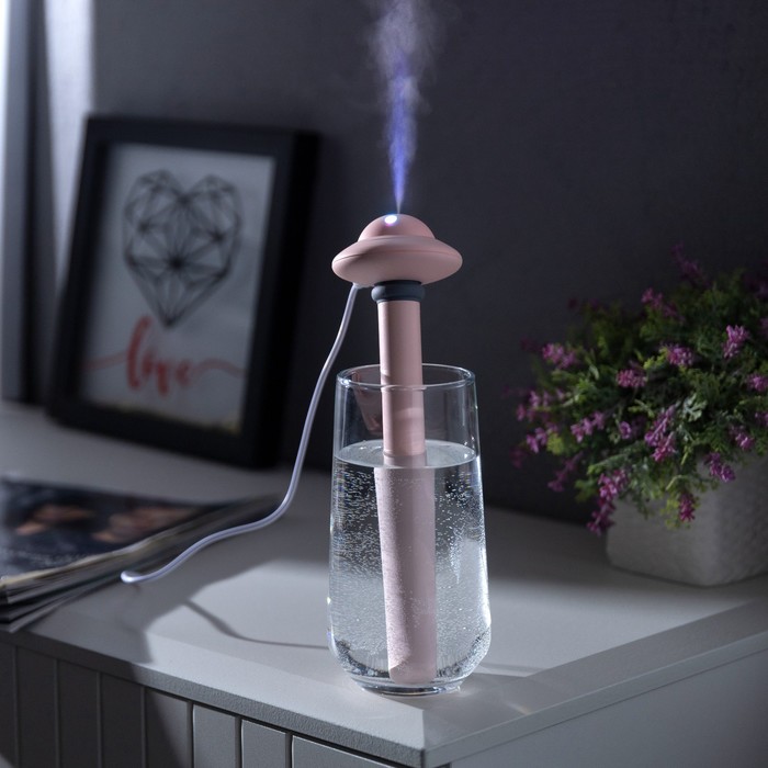 Увлажнитель воздуха «НЛО» HM-21, ультразвуковой, погружной, с подсветкой, USB, розовый
