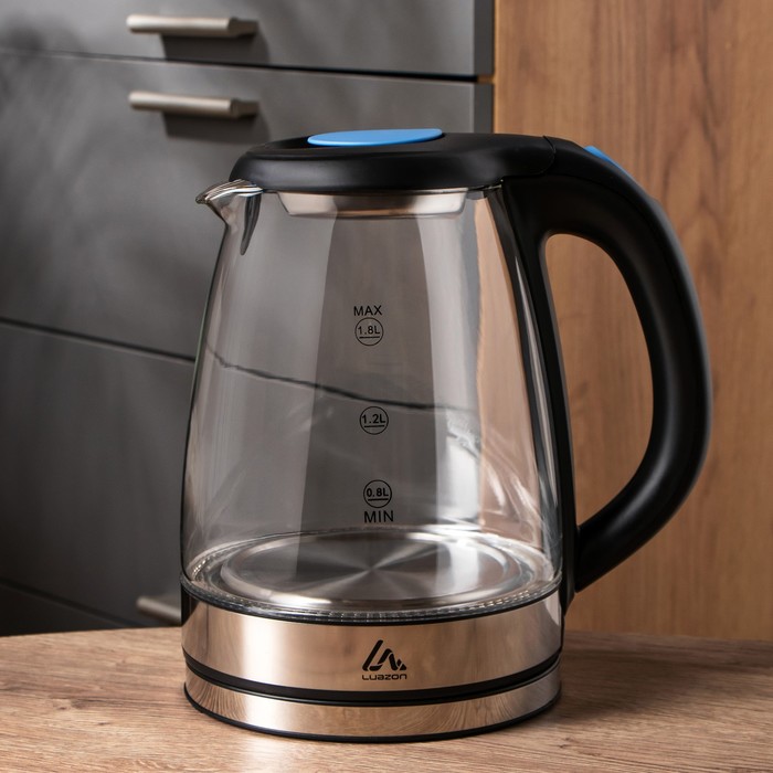 Чайник электрический Luazon LSK-1802, 1.8 л, стеклянный, с подсветкой, 1500 Вт, чёрно-синий