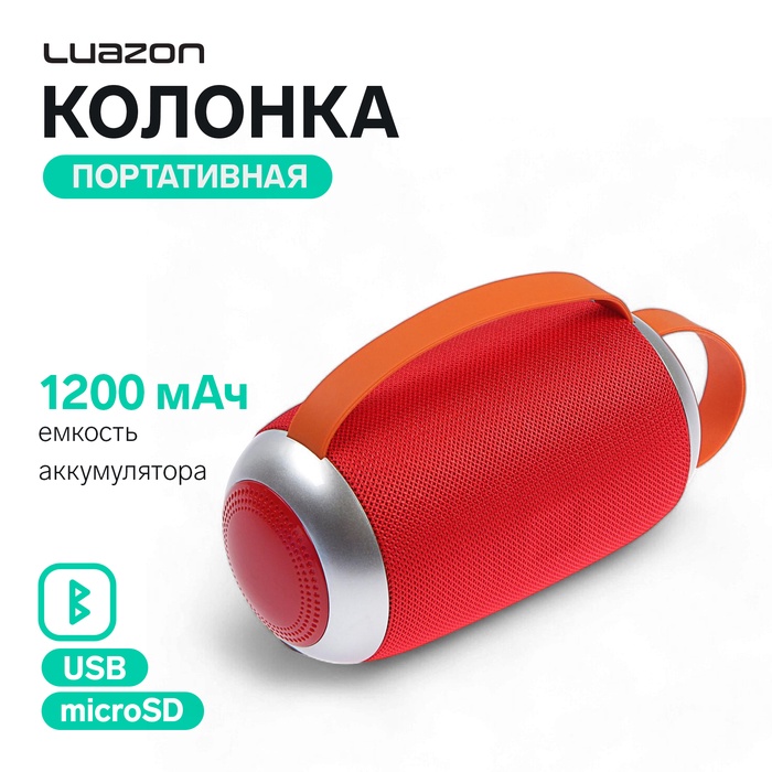 Портативная колонка Luazon LAB-54, 10 Вт, 1200 мАч, microSD, AUX, USB, красная