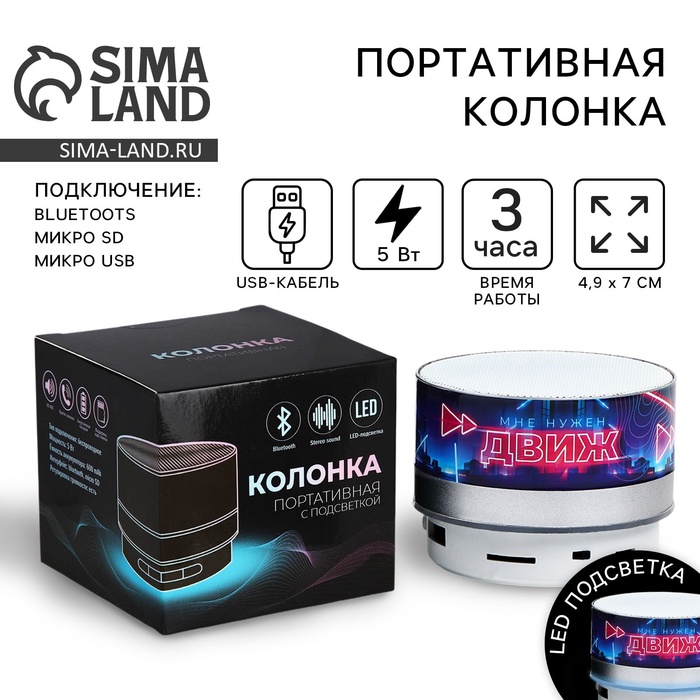 Портативная колонка, с подсветкой мод. PS-01, 8×6 см